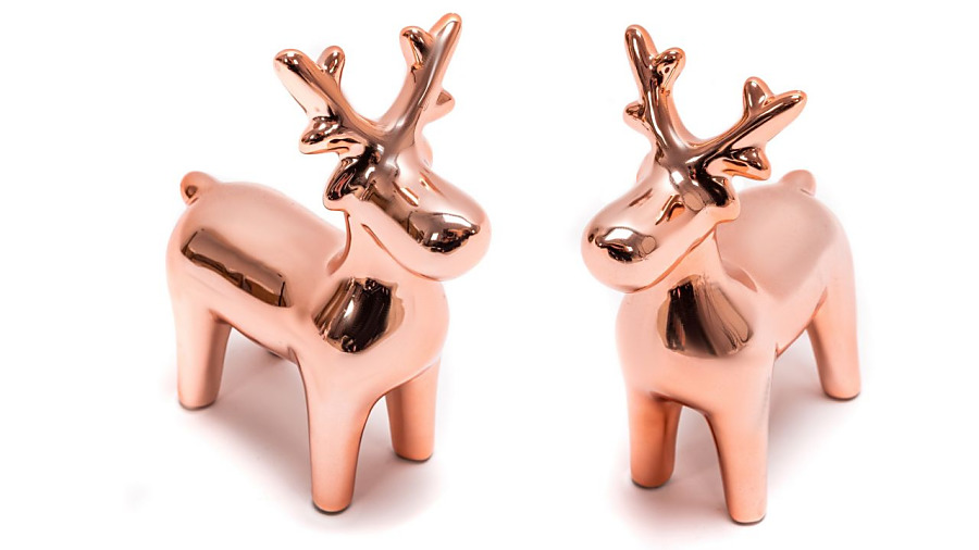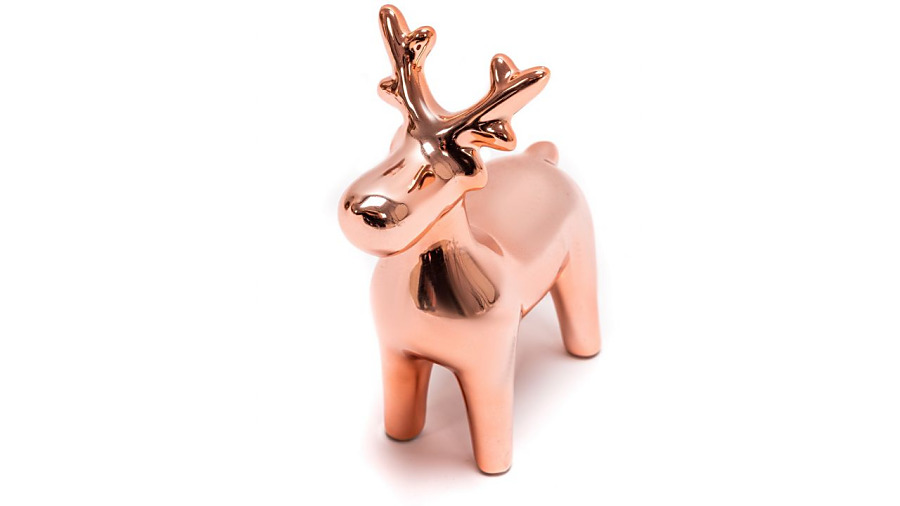 Keramická figúrka sobíka vo farbe ružového zlata. Má výšku 18 cm. Dá sa jednoducho zakomponovať do vianočnej ikebany, alebo položiť na stôl ako minimalistická vianočná dekorácia. Medený kov, alebo farba ružového zlata je v tejto sezóne veľmi obľubená. Elegantná dekorácia v tejto farbe sa hodí do moderného interiéru. Sobík poteší aj ako darček pre blízkeho. Prajeme šťastné a veselé!