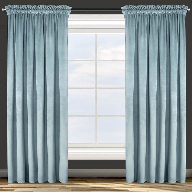 Záves Rosa v obľúbenej bledo-modrej farbe vo veľkosti 135x300cm. Zamatové závesy sú opäť v trende. Závesy sa jednoducho aplikujú na okná, čím môžete častejšie meniť záves podľa nálady. Záves na páske je možné zavesiť na koľajničky, žabky, alebo aj na garnižu vďaka tunelu, cez ktorý sa prevlečie cez tyč a môžete ju tak pohodlne nariasiť podľa potreby. Gramáž závesu Rosa je 300 gramov. V balení je jeden kus.
